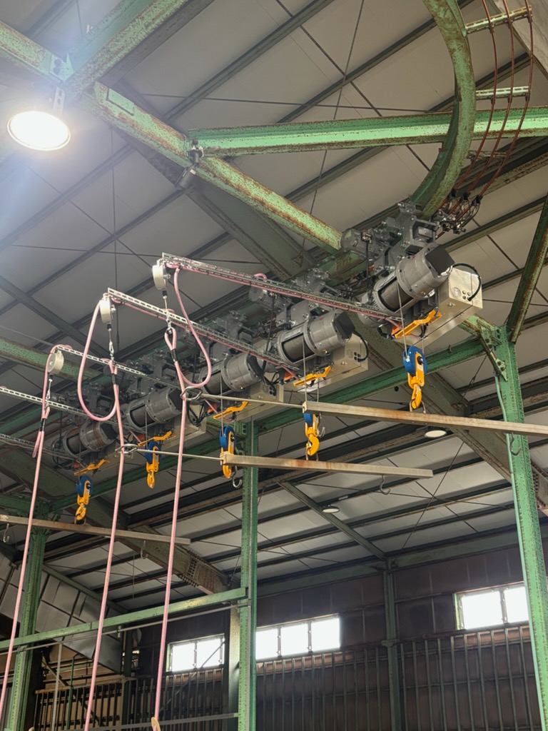 カーブのエンドレスレールなのですが元々の巻上機が直線用だった為、レール、車輪の摩耗が激しく、曲線レール専用巻上機にて取替しました。